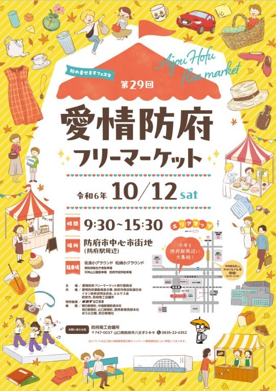 マツダ、ブリジストンなど、防府市内の約150社で結成される愛情防府運動推進団体が、毎年「愛情防府フリーマーケット」を開催しています。