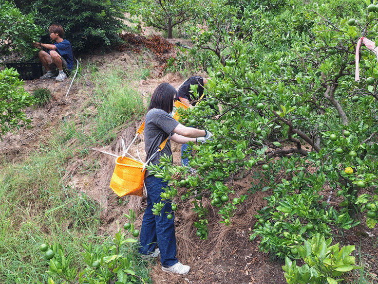 学生と地域が一体となって、通常は間引かれて捨てられてしまう青みかんを、どうすれば食べられるようにできるか、農薬散布のコントロールや、夏のみかんの生育状況による味の違いなどを研究した上での本格的な取り組みとなりました。学生にとっては、思い出深い、とても充実した授業となりました。