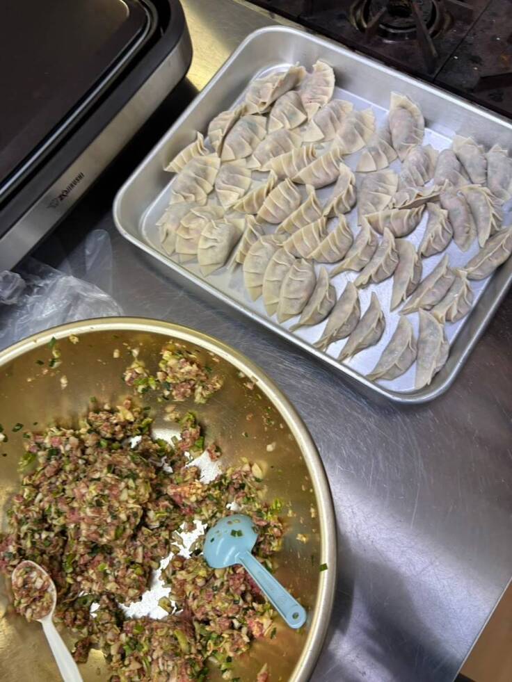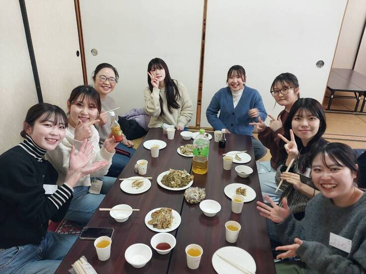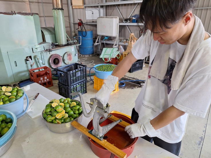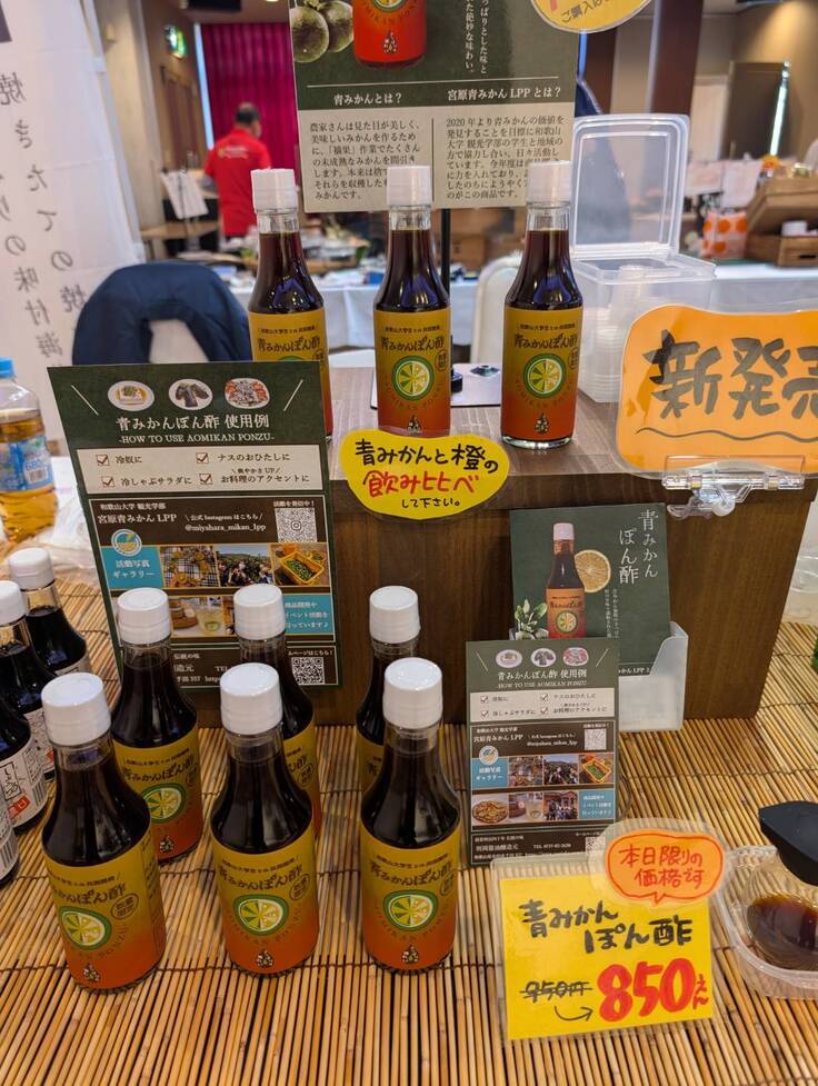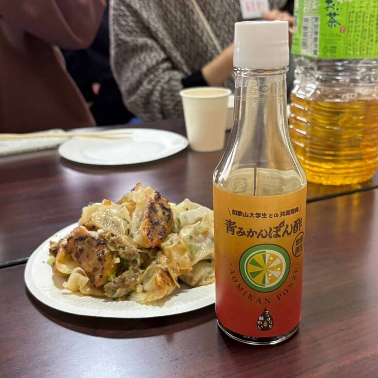 昨年度は、則岡醤油醸造元様との青みかんポン酢作り、レピマルカ様とのお菓子作りに取り組んでまいりましたが、青みかんポン酢を完成させ、無事に上市させることができました。収穫、搾汁、ラベルデザイン、チラシ作成など学生が主体となって行って作った青みかんポン酢の和歌山大学の生協や産直市場「浜のうたせ」での販売は好調で、最終的には宮原地域の小学生のご家族をお招きして餃子と青みかんポン酢の試食会まで実施する、とても充実した活動になりました。
