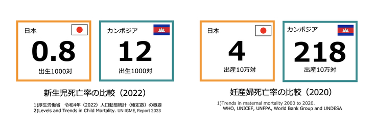 カンボジアの新生児死亡率は日本の15倍、妊産婦死亡率は日本の50倍以上です。