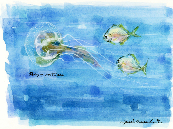 ひとところにとどまることなく広い世界を棲み家とし、ふわふわと軽く柔らかく笑っているかと思えば、流されるのではなくはっきりと自分の意思で泳ぐあり方は、クラゲ--それもオキクラゲのようです。学名の「noctiluca」が意味する通り、夜にふわりと放つ光を慕ってか、外洋をゆくオキクラゲには魚たちが付き従うといいます。それを誇るでも利用するでもなく、なお淡々とゆくオキクラゲの姿、朝弘さんをイメージしたそんなスケッチとともに、このクラウドファンディングを応援する言葉とさせていただきます。