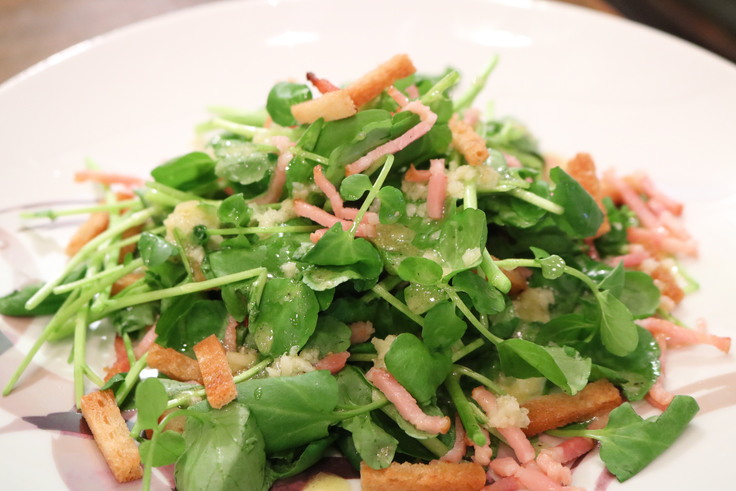 クレソンは栄養豊かな野菜の王様。とりわけ骨粗鬆症に効果があるといわれる葉酸が豊富。是非、サラダでお召し上がりください。写真は、シェ・ケン オリジナルレシピです。