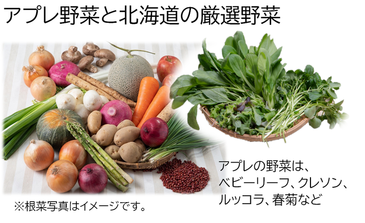 今回のプロジェクトでは、お礼を込めてアプレの贅沢サラダ野菜と北海道の旬のブランド野菜を農家と連携してセットでお届けします。