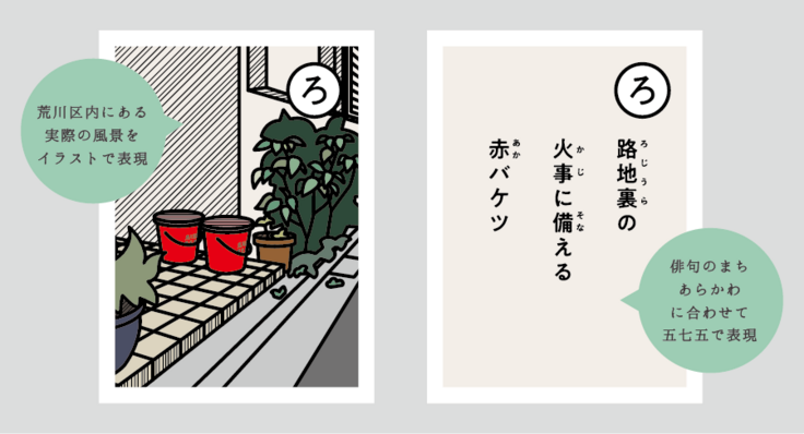 それにちなみ、荒川区では俳句にも力を入れていることから、読み札は五・七・五で表現。