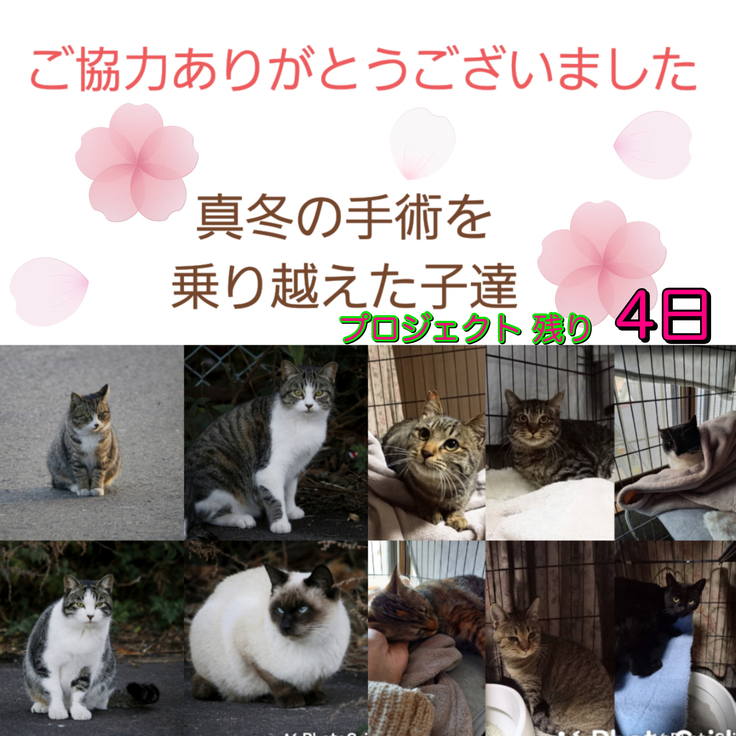 新年度からは、残っているオス猫の去勢手術を始めますが、全力で頑張ります。
