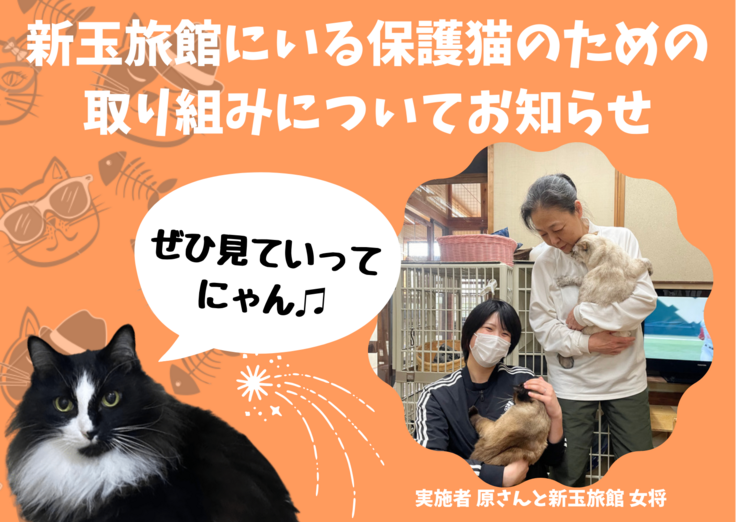今回、この場をお借りして私が実施している新玉旅館の保護猫ちゃんのためのクラウドファンディングの紹介をさせていただきたいと思います。