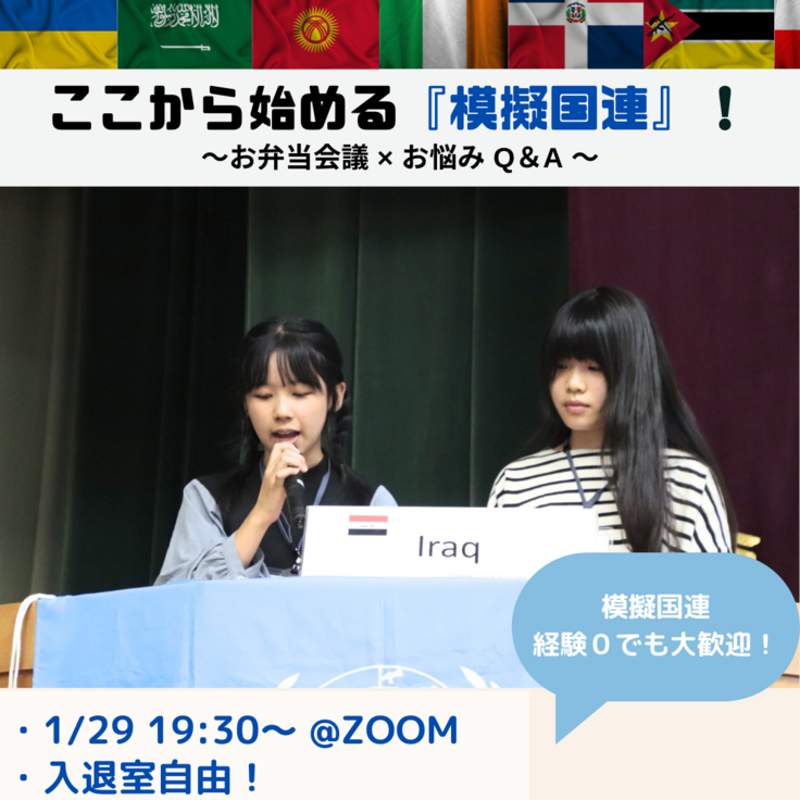 1月29日(水)オンラインイベント(参加費無料)「ここから始める『模擬国連』!~お弁当会議 × お」
