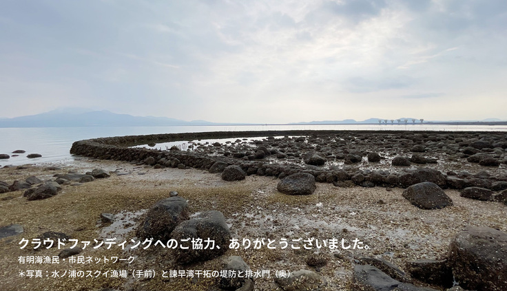 有明海漁民・市民ネットワーク(漁民ネット)によるクラウドファンディング「有明海の漁業と自然環境の再生のための調査研究活動にご支援を!」にご協力いただきまして、誠にありがとうございました。