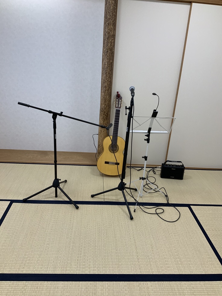 マイク2本、スタンド2本、譜面台、ライト、アンプ、ケーブル2本です!