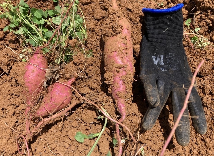 今年は5月ごろまで続いた気温の低さで芋の生育にだいぶ遅れが出ています。