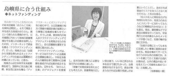 3月25日の琉球新報にて、インタビュー記事をご掲載いただきました。