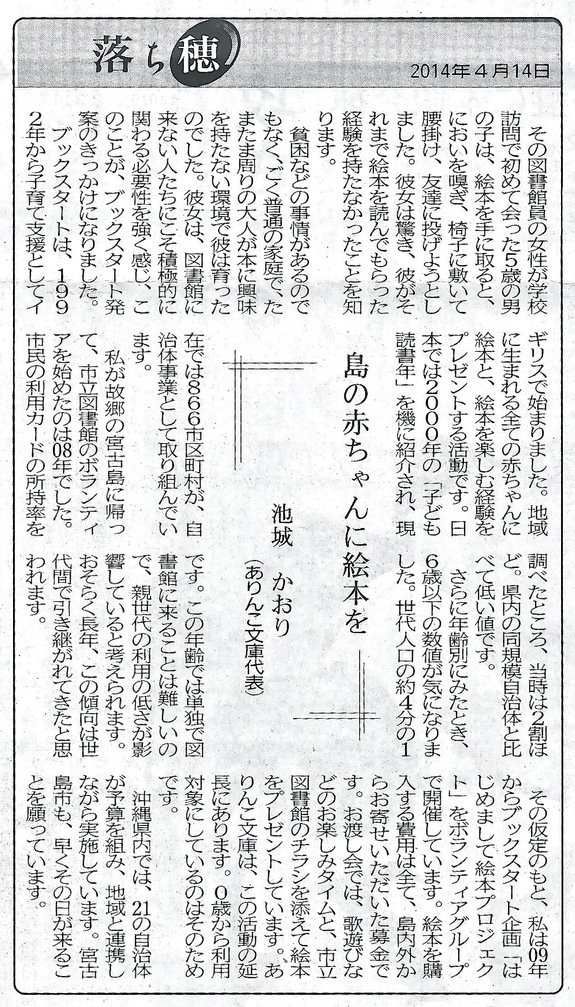 2014年も、宮古島市で生まれる赤ちゃんに絵本を届けたいです。