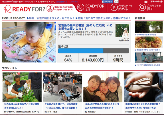 READYFOR?トップページの「PIC UP PROJECT」に取り上げていただきました。
