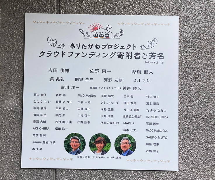 2022年6月20日より同年7月31日まで5,000,000円の目標金額を設定し、7月26日に目標金額を達成。最終的に285人の方々から総額6,265,000円のご寄付をいただきました。第二目標の1200万円に到達することはできませんでしたものの、多くの方からお力をいただくことができました。
