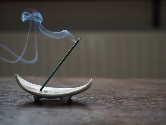 お線香を焚くとき、立ちのぼる煙を見つめ、心を落ち着かせる時間。