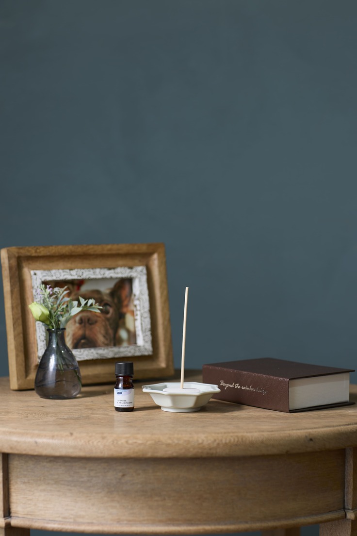 私たちの選びましたアロマオイルは、ラベンダーとフランキンセンスをブレンドしたエッセンシャルオイルで、心に安らぎをもたらすラベンダーと心や魂を鎮め悲しみに寄り添うフランキンセンスの香りが、故人を想うあなたの心を穏やかに包み込み、その時間をより静かで安らかなものに変えてくれます。