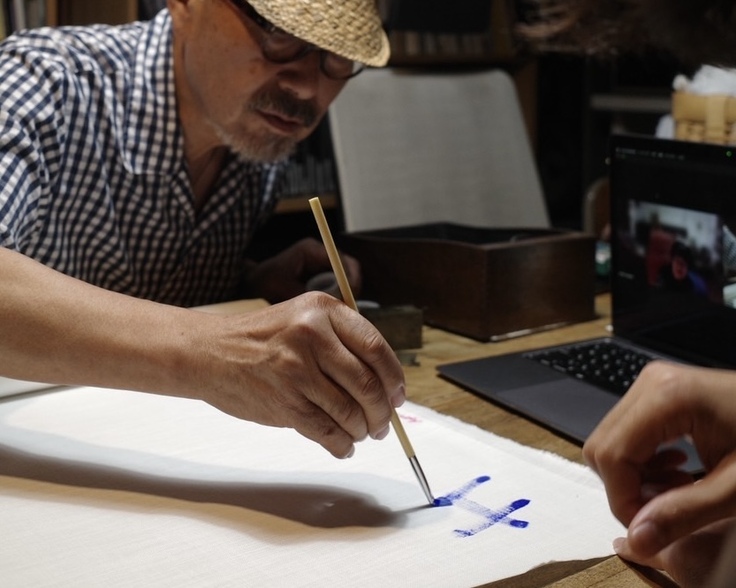 写真は試作中の1コマ。会議中に安藤さんが試し書き。