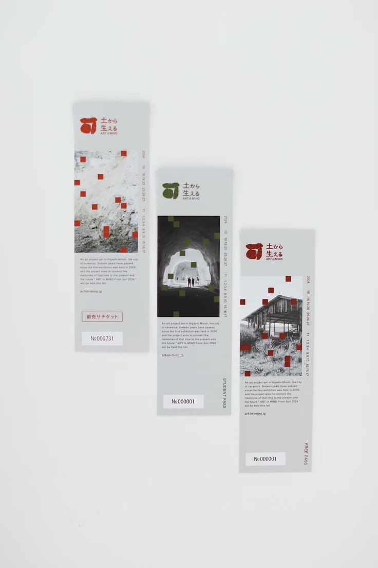 土から生える2024のロゴデザインをはじめ、チケットやチラシ、ポスターなどの印刷物