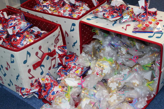 イベント当日に無料配布するお菓子の袋ができました。千個作る予定です!