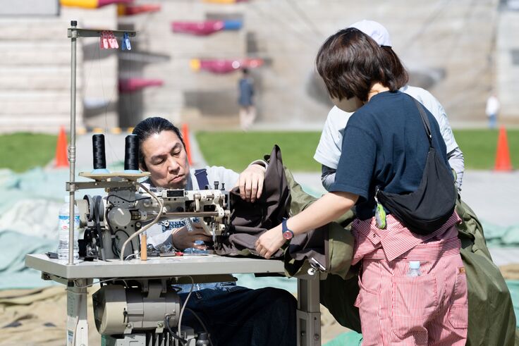 やってみないとわからないという未知数を抱えたまま、安元さんは、持ち込んだミシンで辻褄が合うようどんどん縫合を進めます。