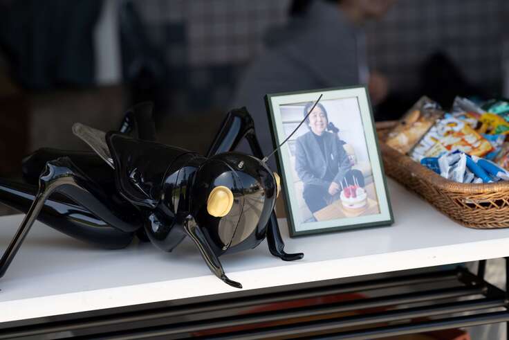 順調に修復が進んだおかげで、トークのご来場者にバッタが膨らんだ様子を見ていただくことが叶いました。