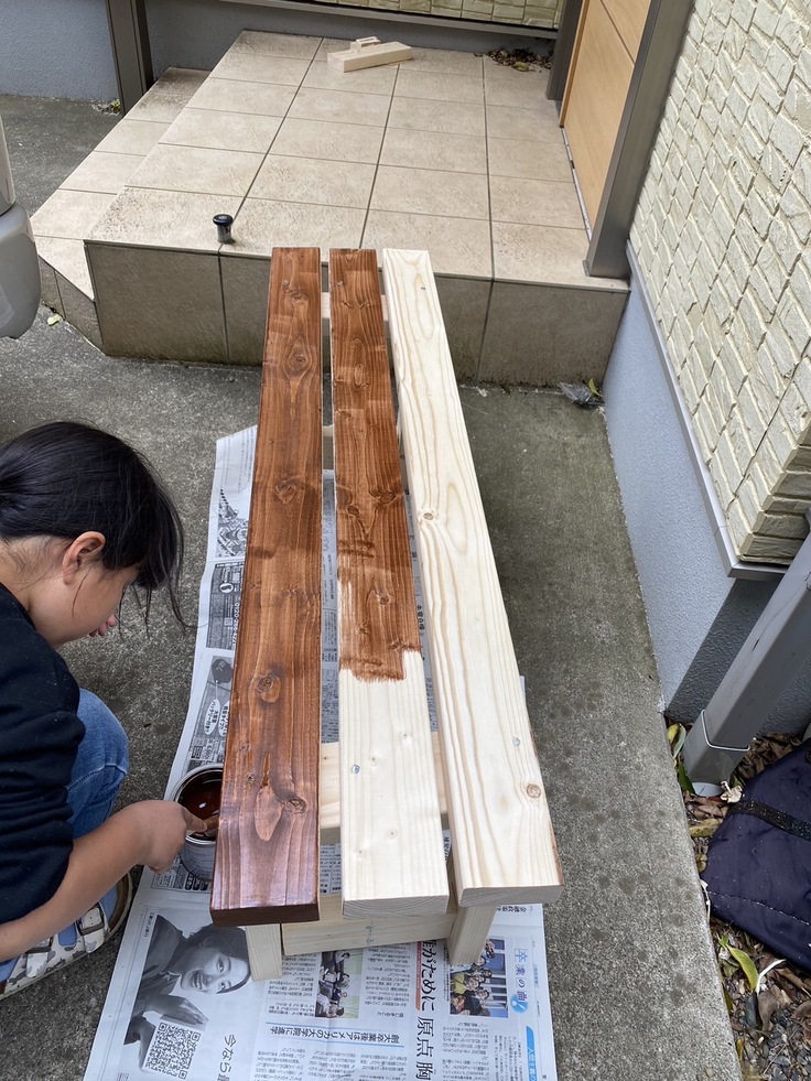 なんとかガタガタと揺れないベンチに仕上がりました🔥