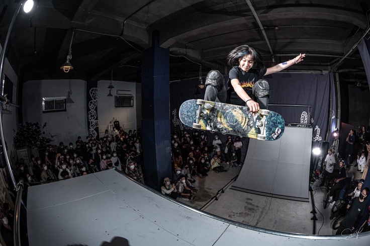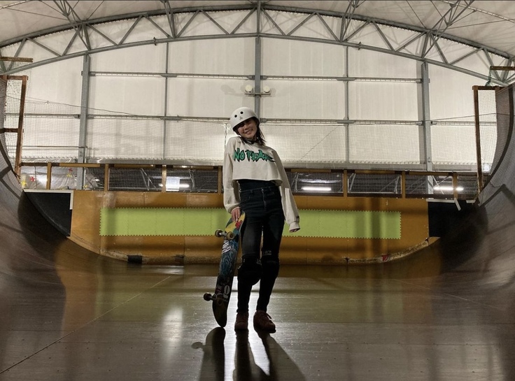 ■経歴 小学2年生の時に、お兄さんがスケートボードをしていた影響で自身も始める。始めてみると楽しくてドンドンのめり込みスケートボード競技の道へ。現在は、限りある時間を競技練習に費やすために通信制の高校で学びながら学業とスケートボード競技の文武両道を邁進中です。ただ、ダイナミックな滑りとは裏腹に少し人見知りなシャイガールでもあります(笑)