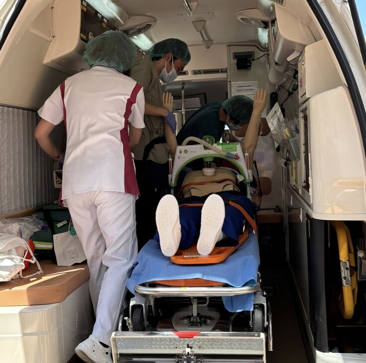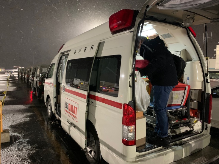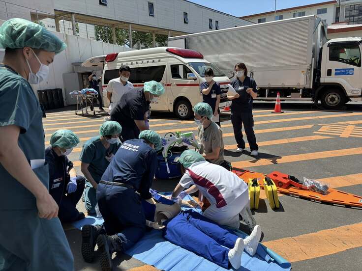実際に、本学の救急チームは、市内の工場での事故や交通事故、高速道路トンネル内事故で出動し、多くの傷病者への対応を行ってきました。また、北海道胆振東部地震(2018年)、能登半島地震(2024年)では旭川から遠く離れた地域に遠征し、被災された方々の診療や搬送を行いました。さらに、旭川消防署からの要請により、高齢者の意識障害やショックなどの症例への対応のため出動する機会も増えています。