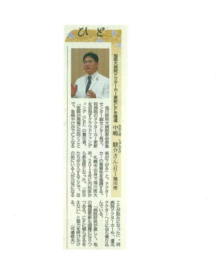今朝の北海道新聞に「ひと」のコーナーで取り上げていただきました。