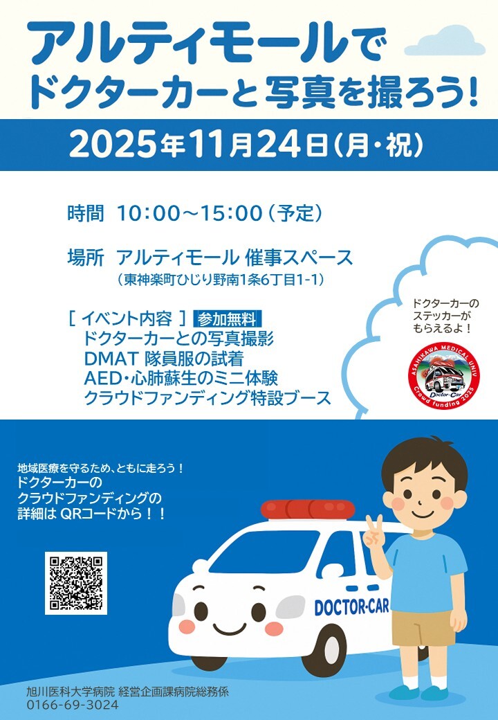 ドクターカーの活動を知ってもらうため、近隣のショッピングモールにて、ドクターカーと写真撮影ができるイベントを開催します。
