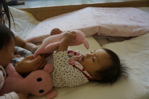 保育園中の子どもたち(赤ちゃんからもうすぐ小学生という子どもたちまで)みんなが自分たちの“赤ちゃん”として本当に大事にしています。