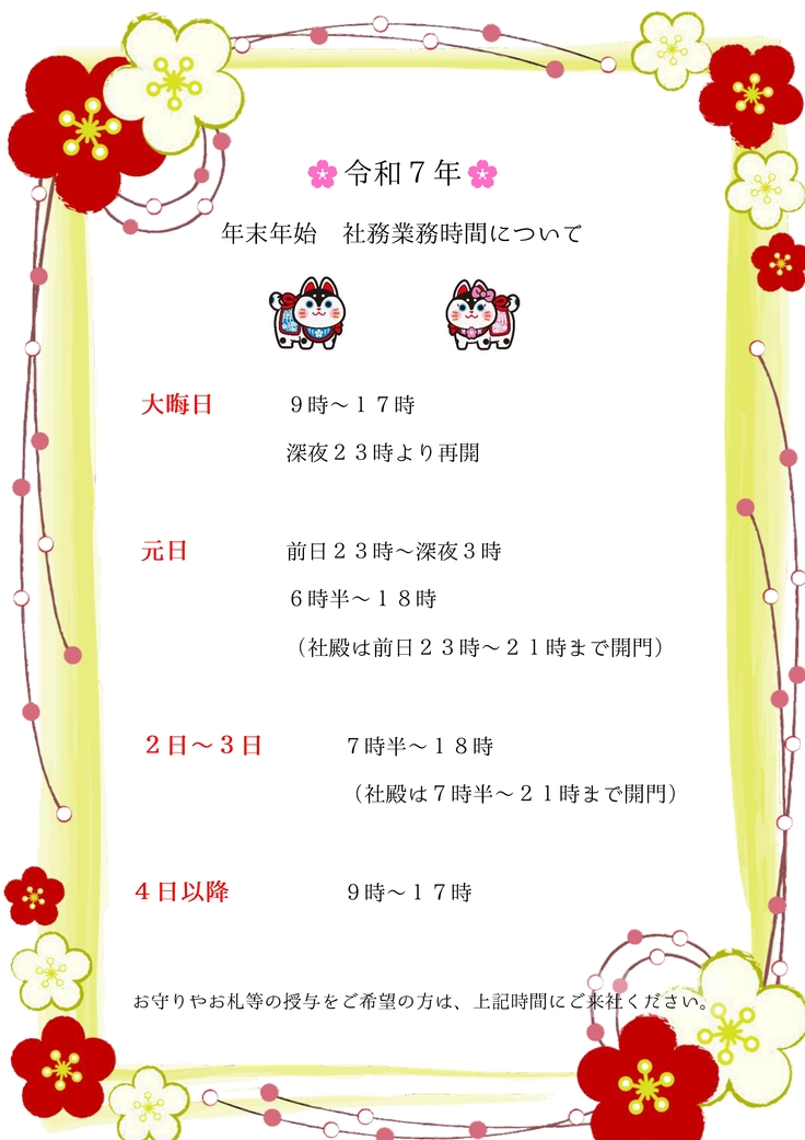 お守り・御朱印等をお受けになりたい方や、社務所をご覧いただきたい方は、