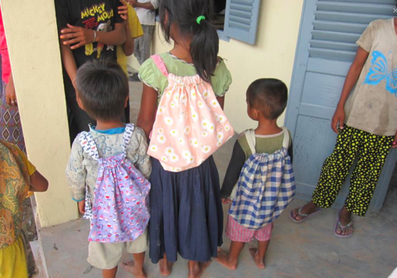 子ども達に支給する通学バック。これは、支援校の貧しい家庭のお母さんたちに作ってもらったものです。