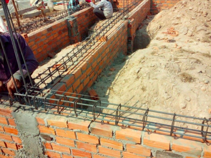 基礎の上にさらに一つ一つの柱から柱に梁をつなげていきます。しっかりした骨組を作り、丈夫な校舎完成を目指します。