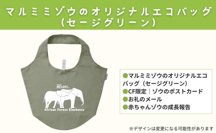【新リターン追加のご紹介】マルミミゾウのオリジナルエコバッグ(セージグリーン)