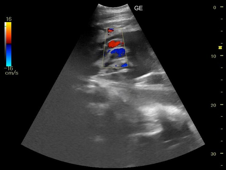 詳しくみてみたところ、へその緒の中にちゃんと血流があることも確認できました。