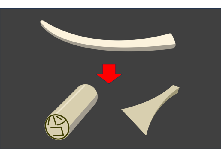 日本の象牙を扱う業界では、象牙は比較的硬い「ハード材」とそれよりは柔らかい「ソフト材」に分類され、硬く丈夫で彫る際にシャープに彫りやすい「ハード材」が実用的な目的には適しているとされています。この「ハード材」という象牙はマルミミゾウ由来とされ、それに対し「ソフト材」はサバンナゾウ由来とされています。