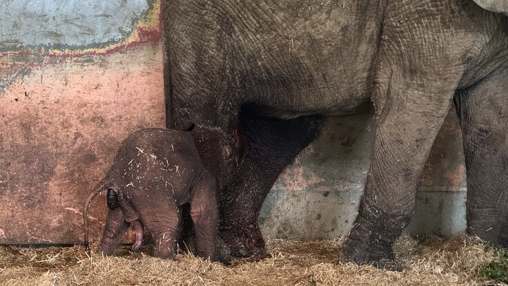 今回誕生した赤ちゃんはオスで、出産直後から元気に立ち上がり、メイのおっぱいを飲もうとする意欲も見せています。