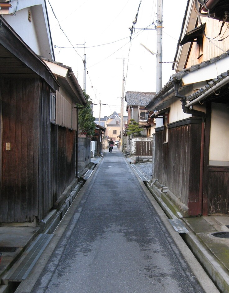 この足軽の屋敷群は「足軽組屋敷」と呼ばれ、道筋の両側に組を単位として集住していたといわれます。現在も江戸時代の町割りがそのまま残っており、地蔵盆、防災訓練、雪かきなども協力して行われ、そのいとなみは、まち並みのみならず江戸時代から400年以上続いています。