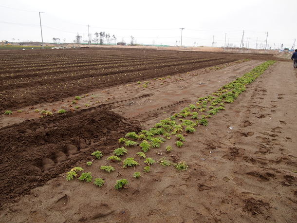明日葉を植えて東松島の復興のシンボルにしようと決めてスタートしたものの瓦礫の撤去作業が大変でした。でもボランティアの皆様のおかげでなんとか整備できました。
