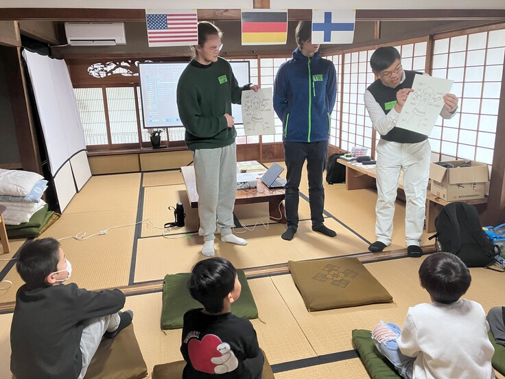 3月から奈義町に滞在しているフィンランドとドイツ出身の青年もサポーターとして参加をしてくれ、多国籍のクラスになりました。