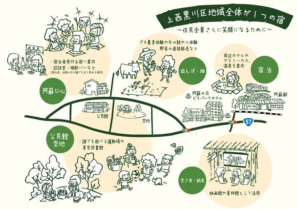 1つの宿に設備が全てあるのではなく、地域全体に阿蘇び心のワクワクをちりばめました。