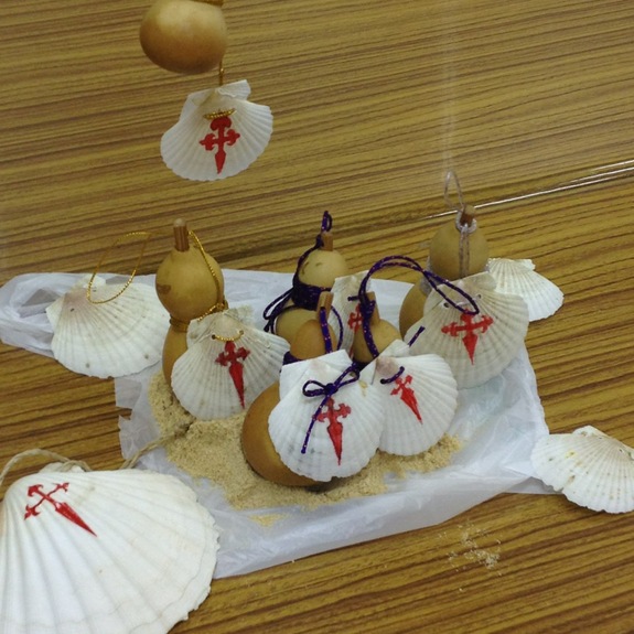 巡礼のシンボルとして、下の写真のようなオリジナルのホタテ貝とひょうたんの飾りを用意し、