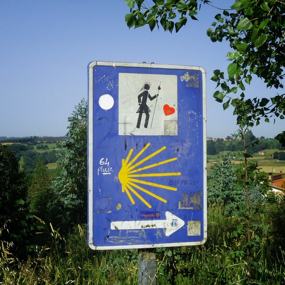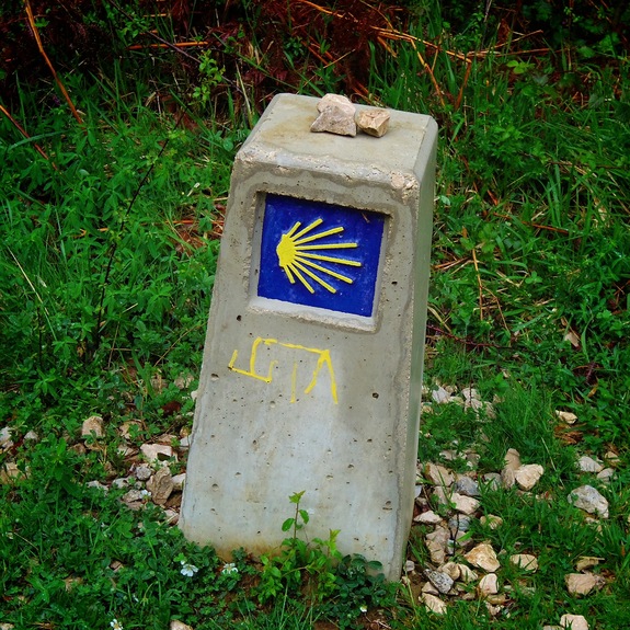 サンティアゴ巡礼路には、たくさんの道しるべや矢印があるので