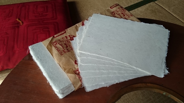 (御礼状のために製作してもらった足助屋敷の手漉き和紙)