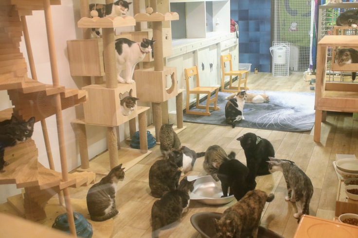 ↓譲渡型ねこハウス【temple cat】では、このように触れ合うことができます。