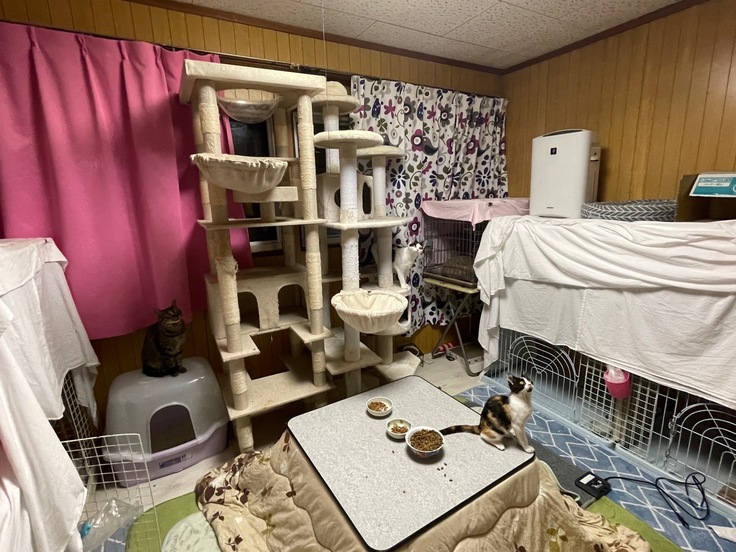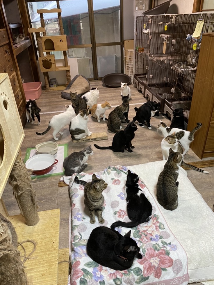 2021年は熱海土石流災害の影響もあり保護頭数がかなり増えた為、新たにシェルターを用意し現在はねこハウスtemple catと3つのシェルターを運営しています。
