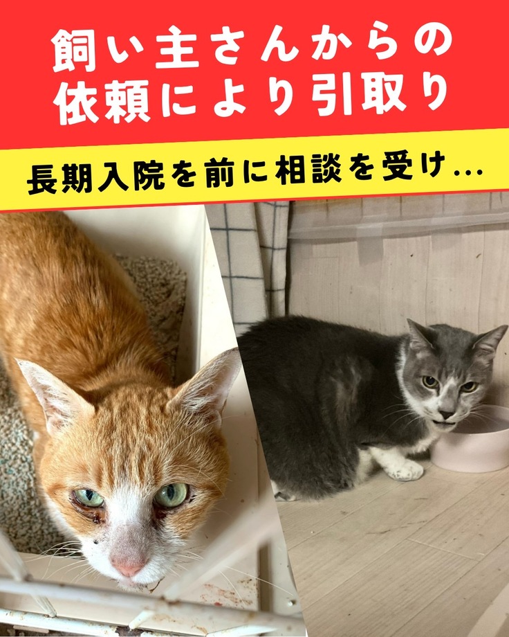 『長期入院をしなければいけない患者さんが、飼養している高齢猫2匹の引き取りをお願い出来ないか?』