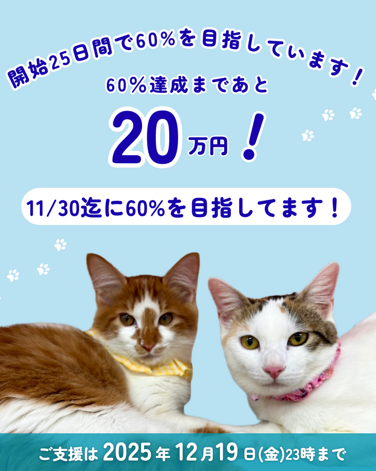 シェルターで暮らす保護猫たちに、適切な医療と快適な暮らしを届けるため、少しでも早い段階での第一目標の達成を目指し第二、第三ゴールを目指しています!!!