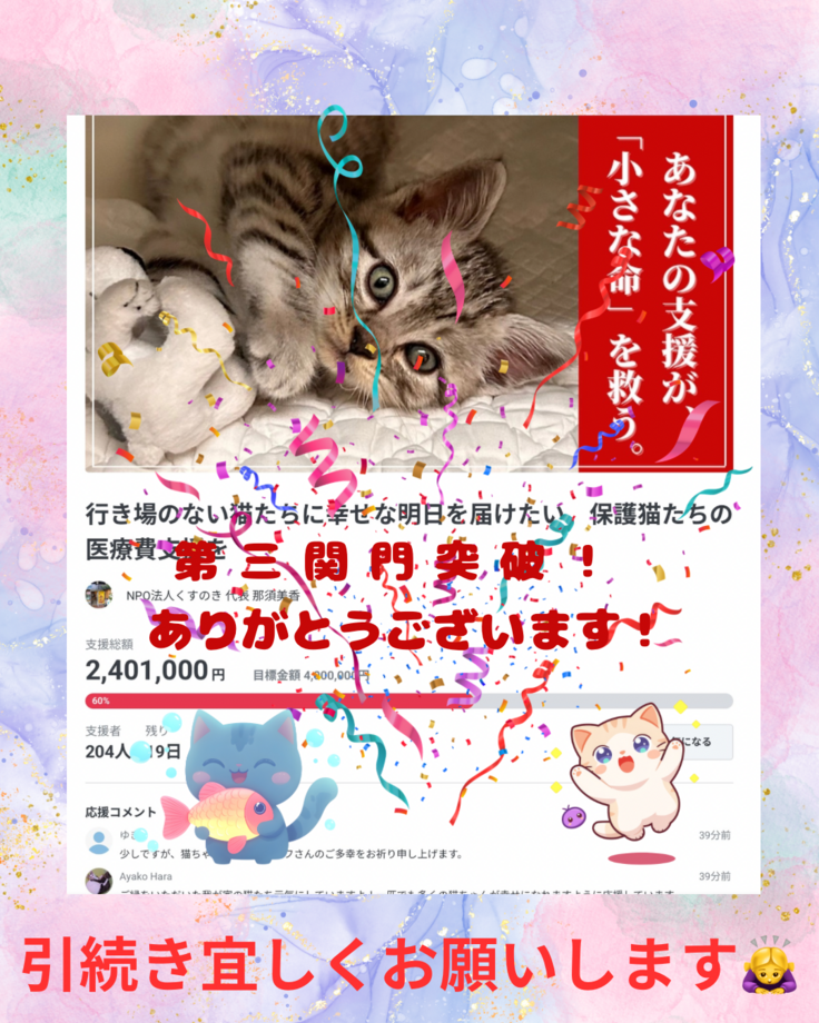 残り18日間、保護猫達のため諦めず挑戦を続けて参ります!